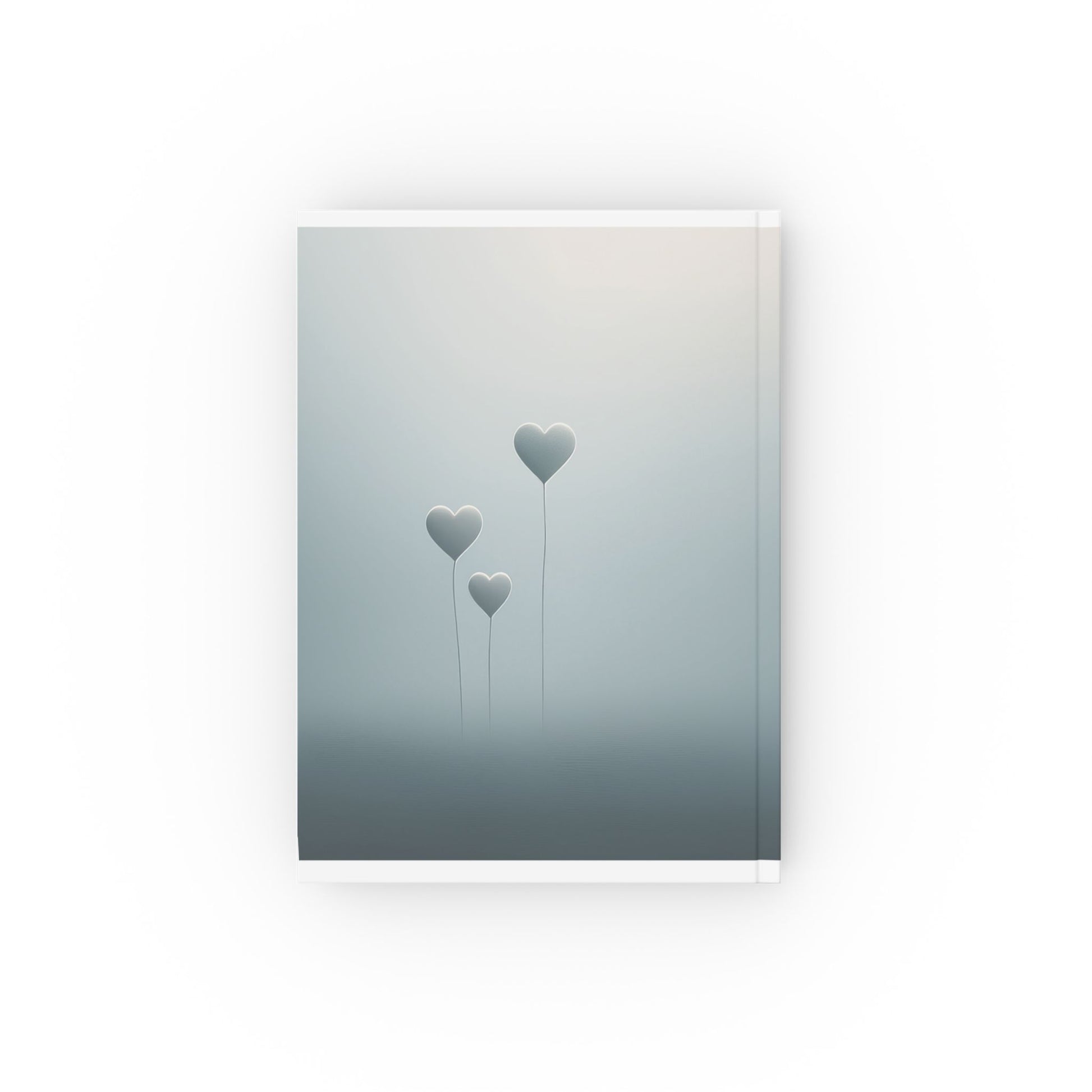 A minimalist A5 hardback journal featuring a soft blue grey heart design. Calm, modern, and perfect for journaling, note-taking, or thoughtful gifting.